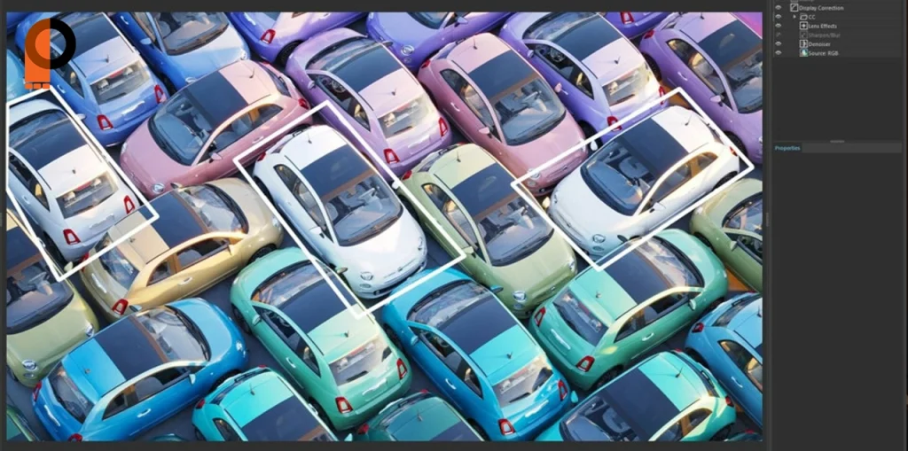 در نسخه جدید V-Ray Frame Buffer (VFB)، قابلیتهای پیشرفتهای برای بهبود کنترل و ویرایش تصاویر رندر شده اضافه شده است. یکی از این ویژگیها، لایه وینیتینگ (Vignette Layer) است که امکان ایجاد افکتهای نرم و طبیعی در لبههای تصویر را فراهم میکند و به خروجی رندر جلوهای سینمایی میبخشد. همچنین، پشتیبانی از منطقهبندی رندر آزاد (Freeform Region Rendering) اضافه شده است که به کاربران اجازه میدهد محدودههای دلخواهی را برای رندر تعیین کنند و بخشهای کلیدی تصویر را سریعتر پردازش نمایند. علاوه بر این، زبانه جدید Filters به نرمافزار اضافه شده است که شامل مجموعهای از پریستهای آماده برای تصحیح رنگ و بهبود کیفیت تصویر است، که فرآیند تنظیم رنگ را سادهتر و کارآمدتر میکند.